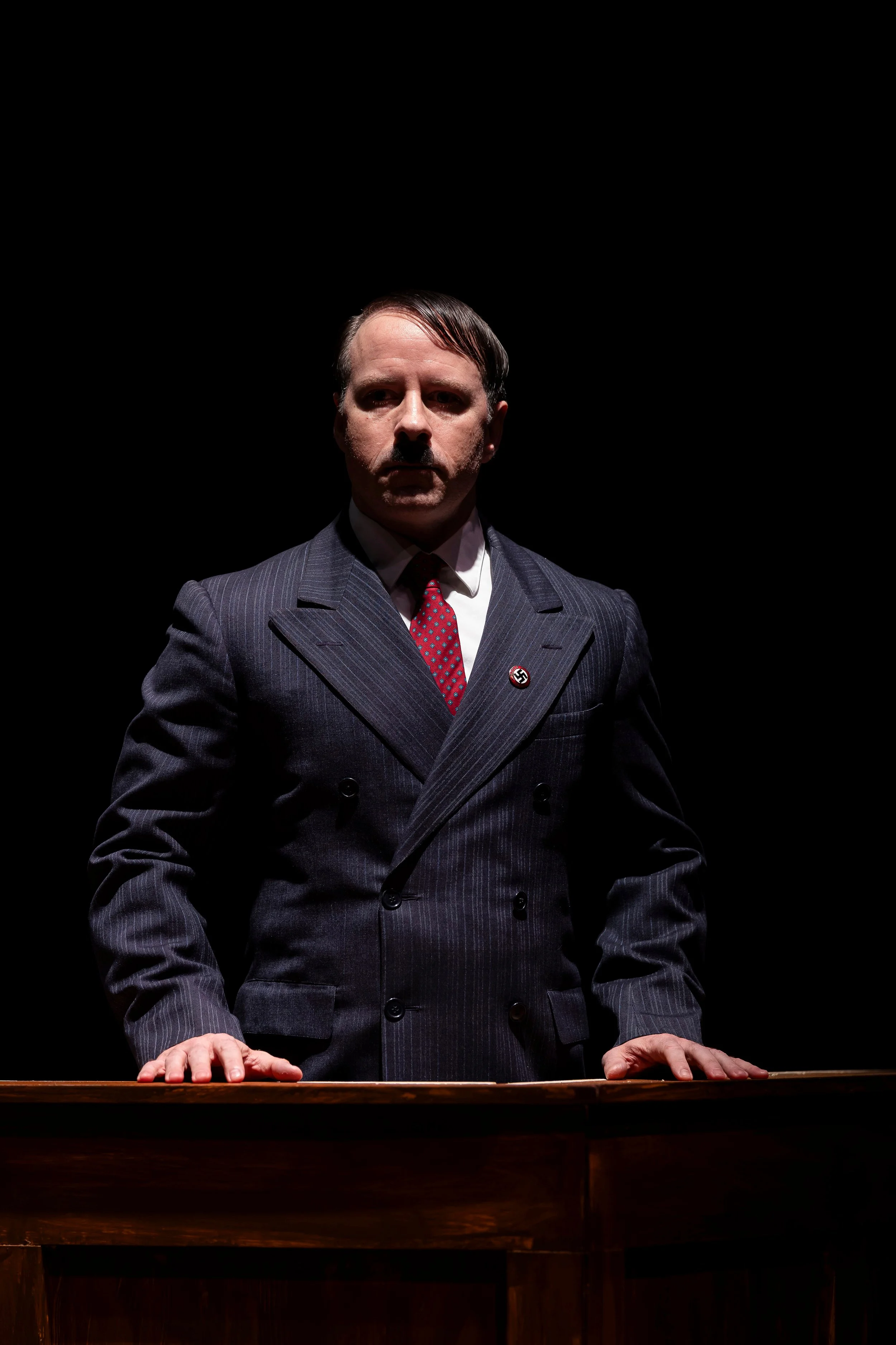 “I imagine the role of Adolf Hitler must be a difficult one to portray. Calhoon’s depiction came across as a deeply layered one. His voice was not booming. His demeanour was almost weak. The tension and struggle to maintain control over his voice, facial expressions, and body language as he seethes in anger and humiliation gives the audience a peek into how depraved he truly is. Without coming across as sympathetic nor shying away from the reality of who Adolf Hitler was and all that he did — Calhoon manages to exude a physical presence of a tiny man, but one who is barely holding back his true emotions. One who is only using restraint for the sake of his own reputation and personal political gain.“